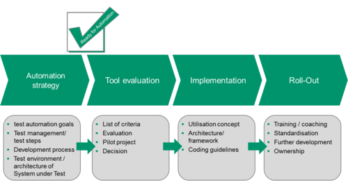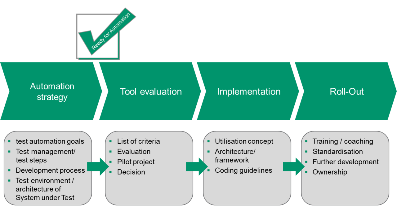 The specific tasks to be completed in each step may vary from case to case. For example, existing automation tools may render a tool evaluation unnecessary. This often raises the question of whether sufficient facts are already available to even begin with automation. At the outset, the essential fundamental decisions should be made in order to create the conditions for further work. Once ‘TA readiness’ has been established, the next steps can be tackled.